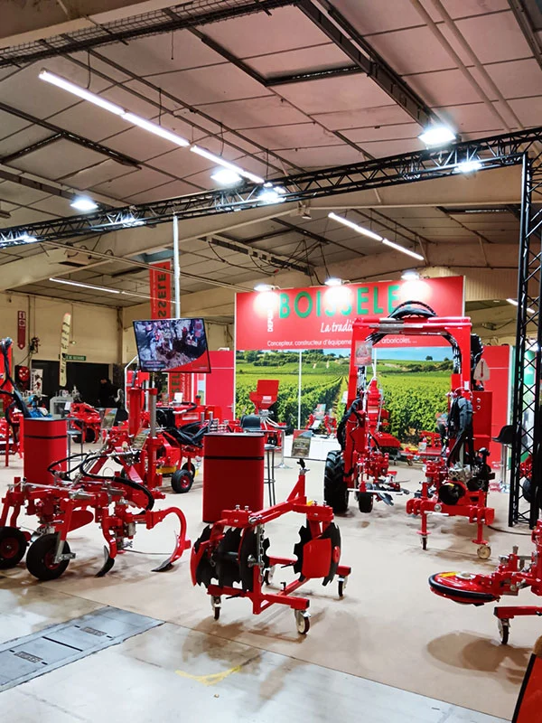 adEXPO, creator of customized booth in Montpellier, helps exhibitors achieve their objectives. Boisselet, nominated at Sitévi Innovation 2023 for the Acolyte III – Straddle tool carrier with a ground height monitoring system that reduces the need for driver supervision. The Boisselet booth at Sitevi has a surface area of 187.5m², open at 2 angles, giving excellent visibility of all the equipment on display. A large gantry stands in the center of the stand to highlight the range of tools. A luminous cubic sign gives a high signal to visitors. The reception counter is customized, with different styles available from our ACTUEL & DECORS catalog. adEXPO thanks its customers for their loyalty in entrusting us with the creation of their stands. We follow our customers throughout France and abroad. You can consult the list of trade shows where we are present for our customers.