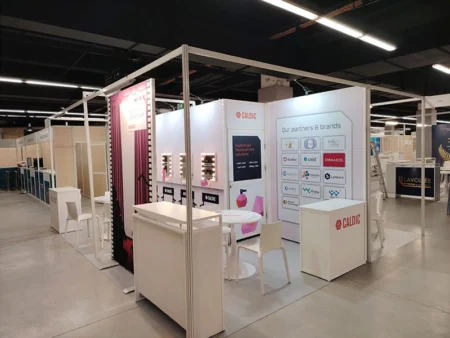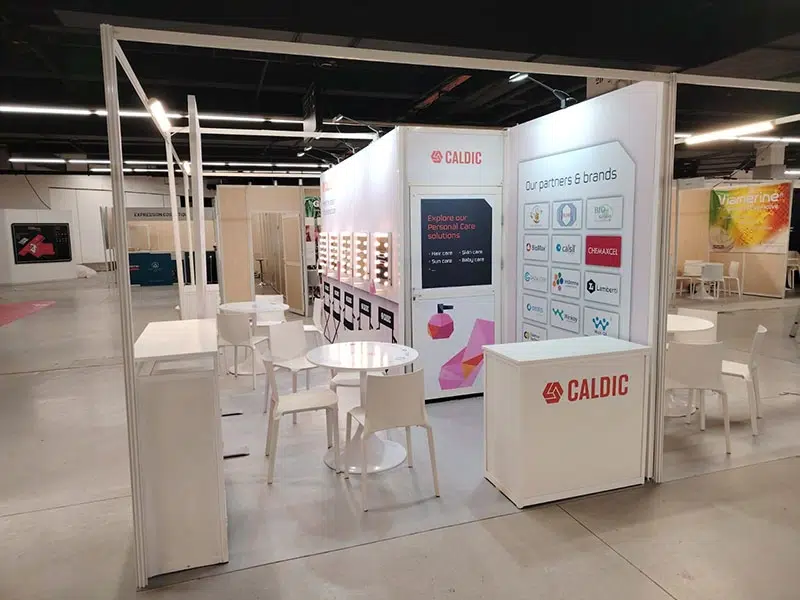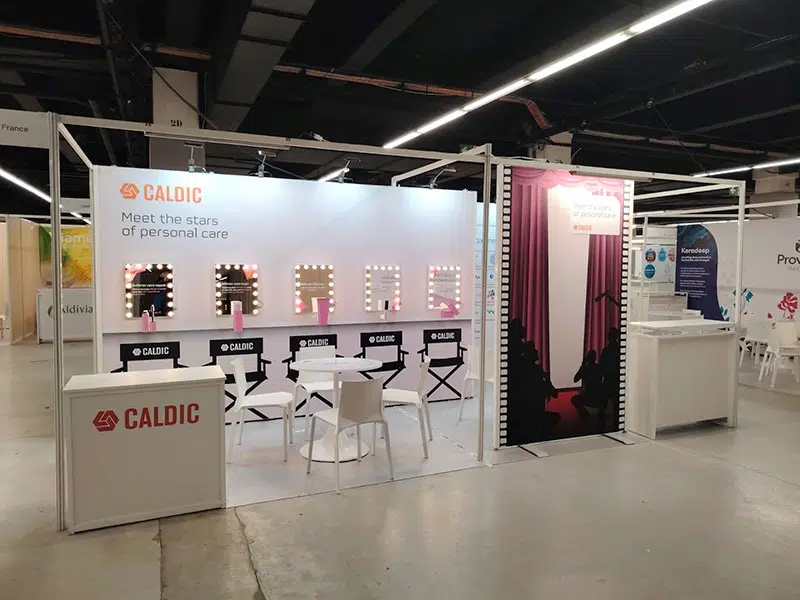 Whether for prestigious stands or small-scale layouts, we tailor our solutions to the specific needs of each customer. This booth for CALDIC illustrates our expertise in optimizing pre-equipped spaces, while guaranteeing a strong visual identity.