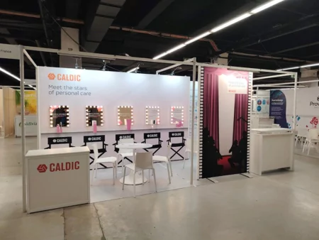 adEXPO, Paris stand operator with the Caldic booth at Cosmetagora. For the COSMETAGORA Paris trade show, adEXPO supported CALDIC with a customized layout on a pre-equipped stand (the organizer’s basic stand). This made-to-measure solution demonstrates our ability to transform standard spaces into genuine media for visual communication and brand identity.
