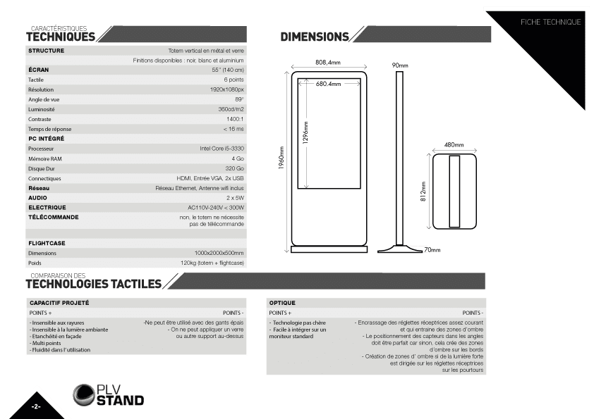 The interactive kiosk 55 is a striking digital solution for showing your products and services at trade shows, fairs and professional events. With its giant smartphone-like design and elegant black base, it instantly catches the eye and invites visitors to an immersive, engaging experience. Thanks to its high-quality multitouch screen (up to 10 points), you can interact fluidly and immersively with your prospects and customers.