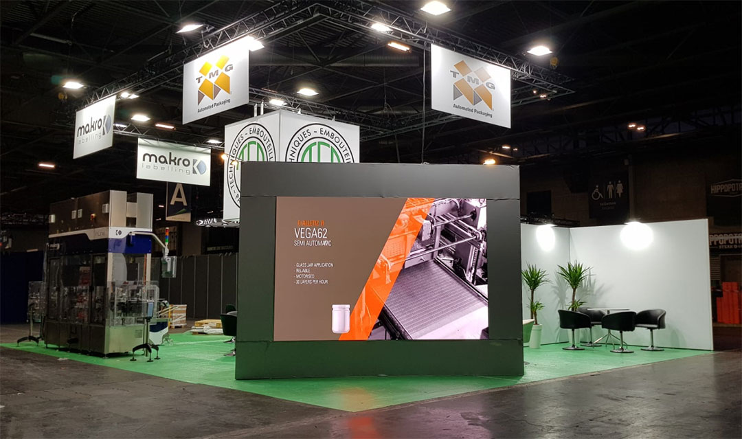 It’s neatly integrated into the stand using fabric or PVC panels, offering an elegant, harmonious finish. Modular according to your needs, this LED wall can be configured to create impressive visual effects, enhancing the appeal of your exhibition space.