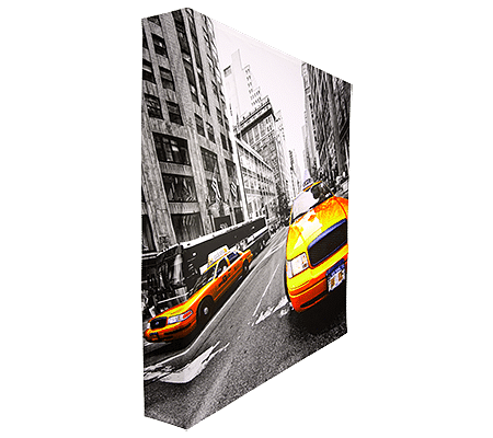 - Impression sur tissu tendu : Haute définition, sans reflets