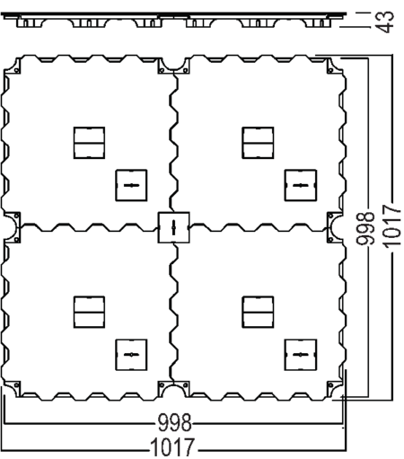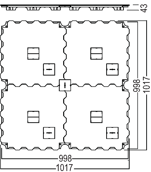 Dimensions 1017 × 1017 × 43 mm