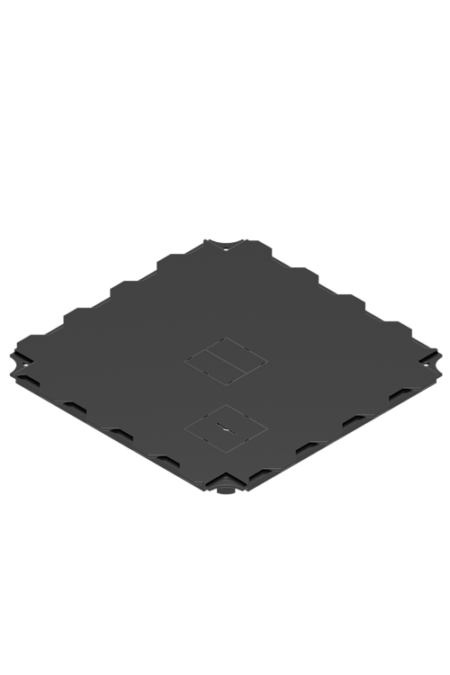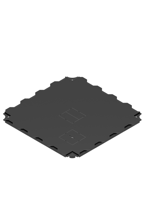 Octanorm OCTAeco modular flooring is quick and easy to lay on the ground. The 1m² panel is made up of 4 highly resistant floor slabs weighing up to 2 tons per m². Suitable for indoor and outdoor trade shows. Slabs with cable routing. This OCTAeco low-thickness floor is used at many exhibitions for raised stands. Slab drawing OCTAeco flooring