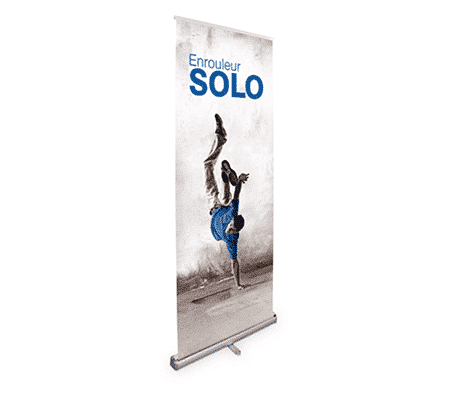 The Rollup SOLO is the most economical solution in our range of roll-up displays, while guaranteeing quality display for your traveling exhibitions, trade shows or fairs. It features a roll-up visual protected in a compact box, for quick assembly and easy transport.