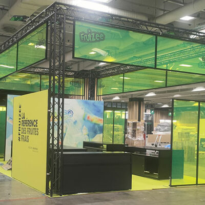 Stands de 50 à 100 m2 selon les configurations, stand ouvert sur 1 angle, ou 2 angles, en ilôt. Stands de type traditionnel, modulable, écoresponsable.