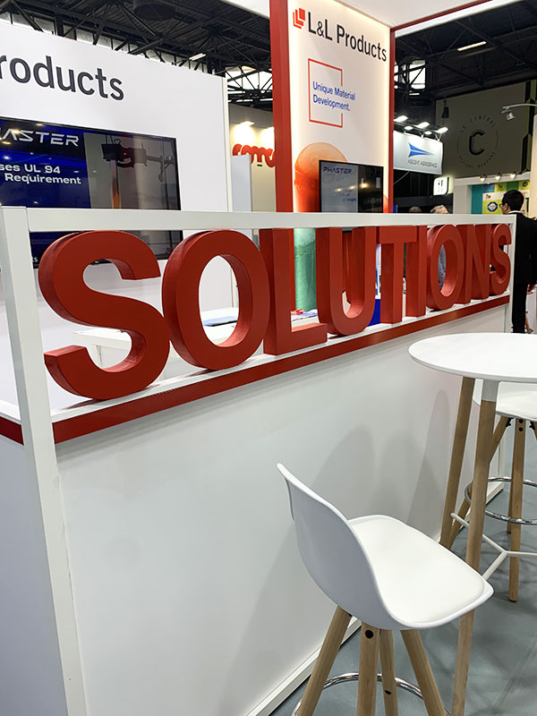 Stand L&L Products au salon du JEC WORLD à Paris. Le stand personnalisé est de 64 m² – Il est en ilôt, ouvert sur 4 angles. Voir les informations du salon